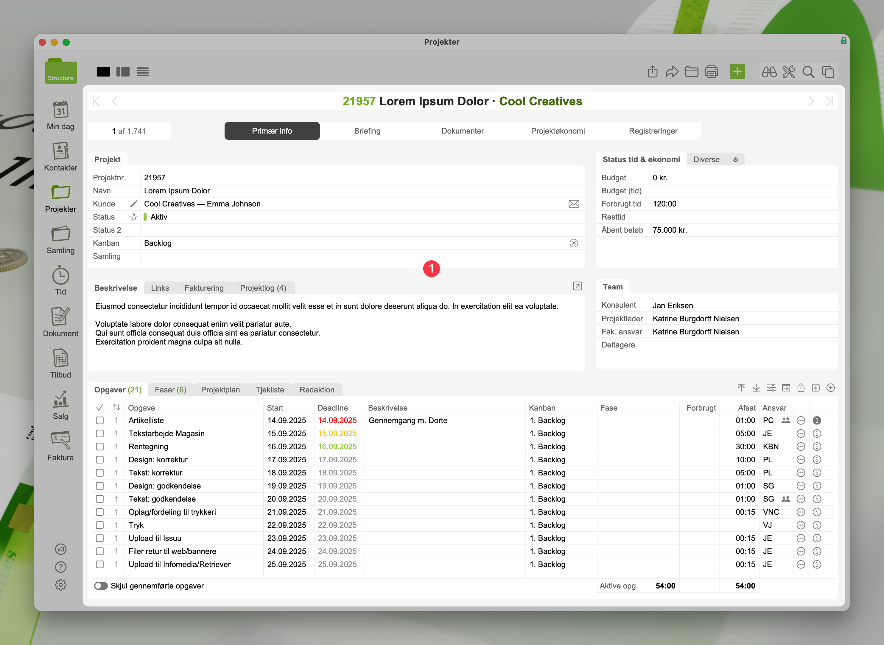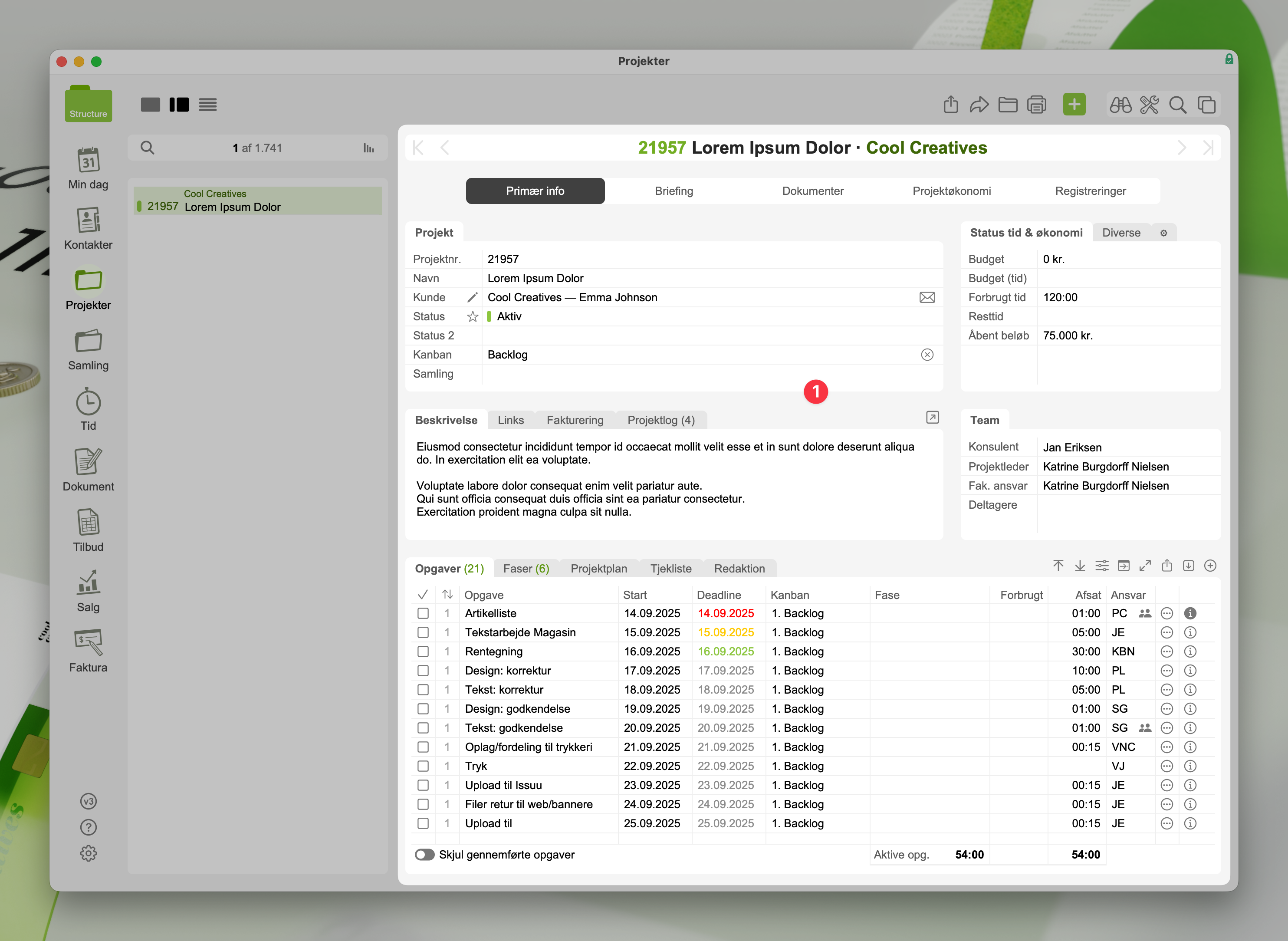 Alle moduler i Structure har et kort, som præsenterer data (indhold) specifikt for den kontekst du står i. Så et kort kan være en kunde, et projekt eller en faktura.