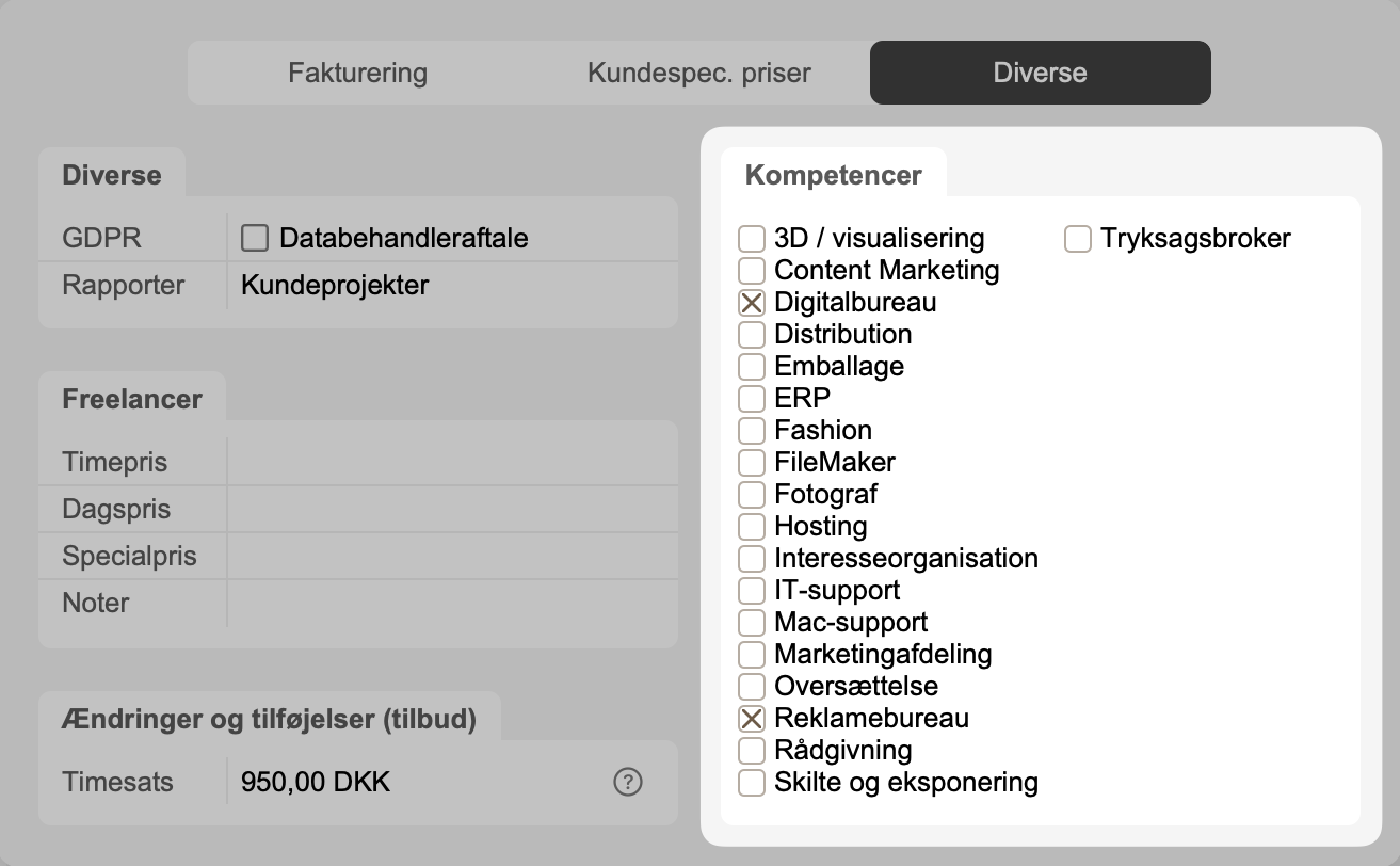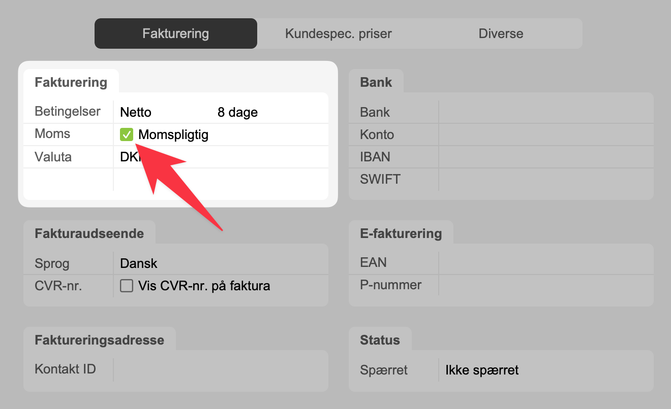 Eksempel på afkrydsningsfelter i Kontakt-modulet
