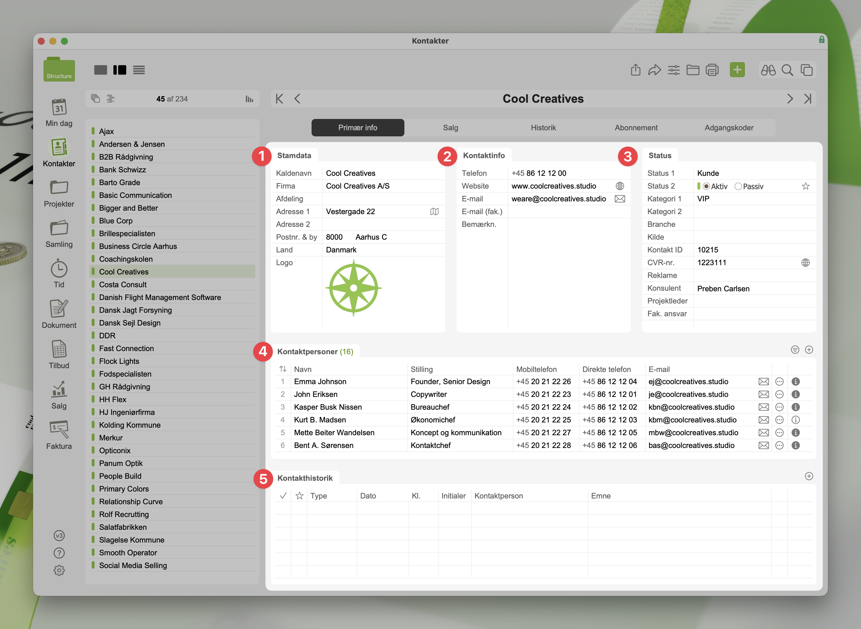 Infobokse er en naturlig måde at gruppere data på. Boksen har en fane med en passende overskrift, som gør det nemt for dig at identificere boksens indhold. Inde i boksen finder du felter og feltnavne."