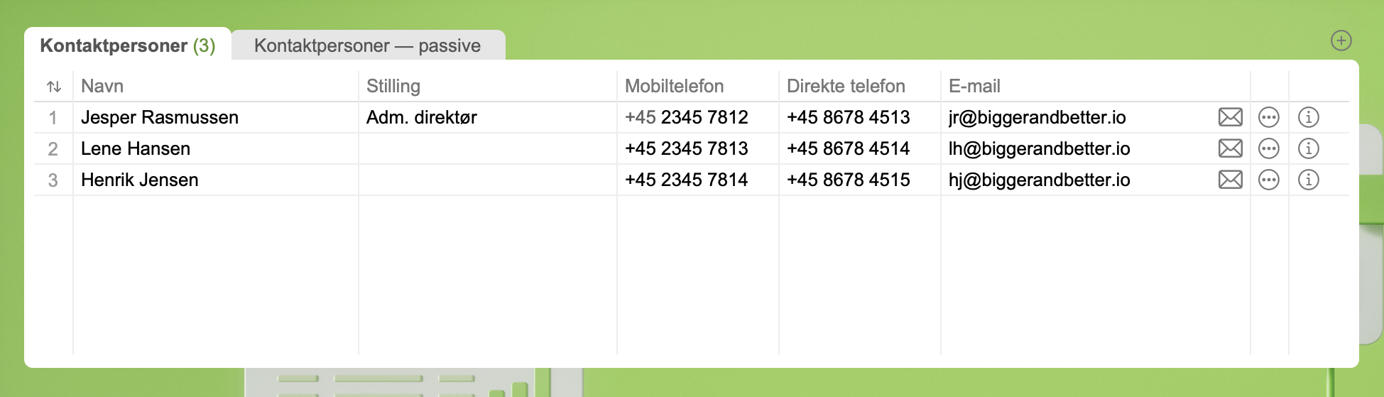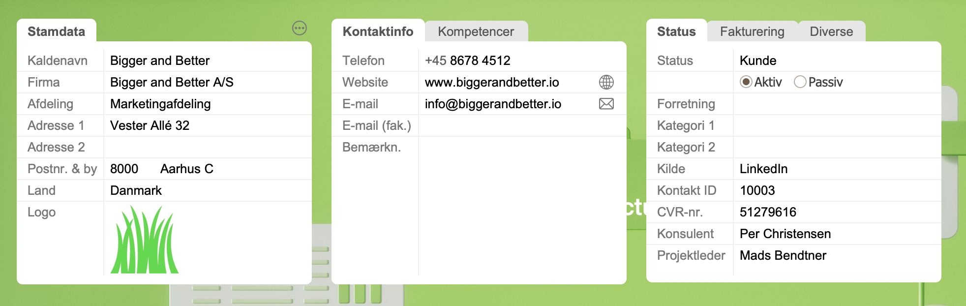 I Kontakter kan du indtaste og se en lang række informationer for en kontakt.