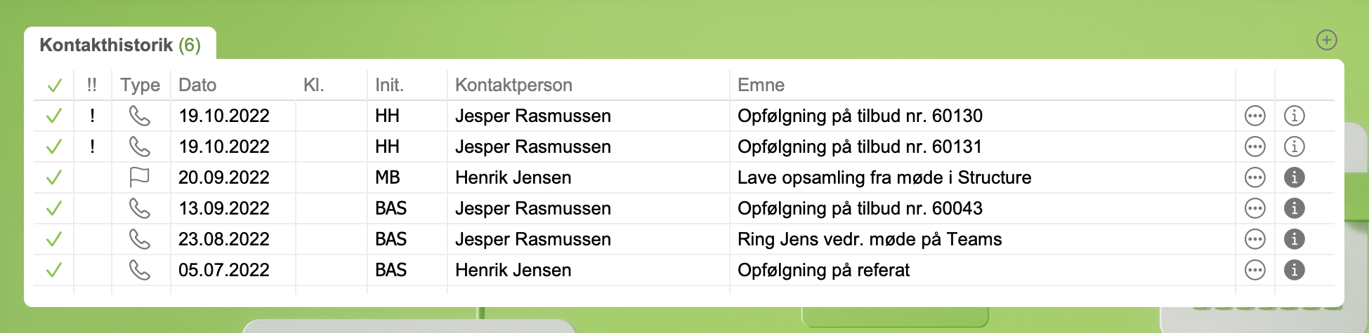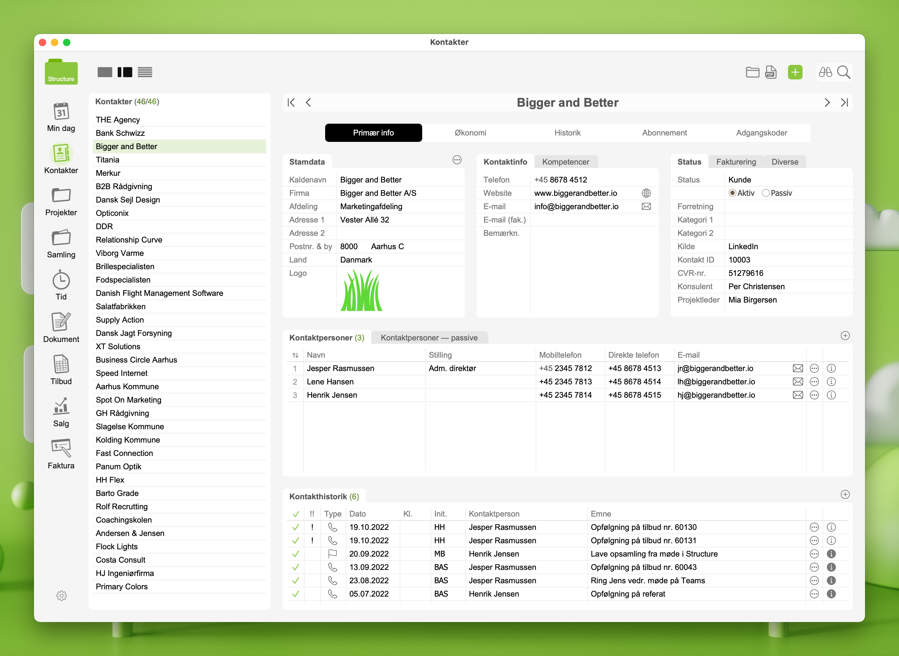 Kontakter i Structure er "hjemmet" for alle virksomhedens kontakter. Det kan være kunder, potentielle kunder, tidligere kunder, leverandører, samarbejdspartnere, venner af huset m.m.