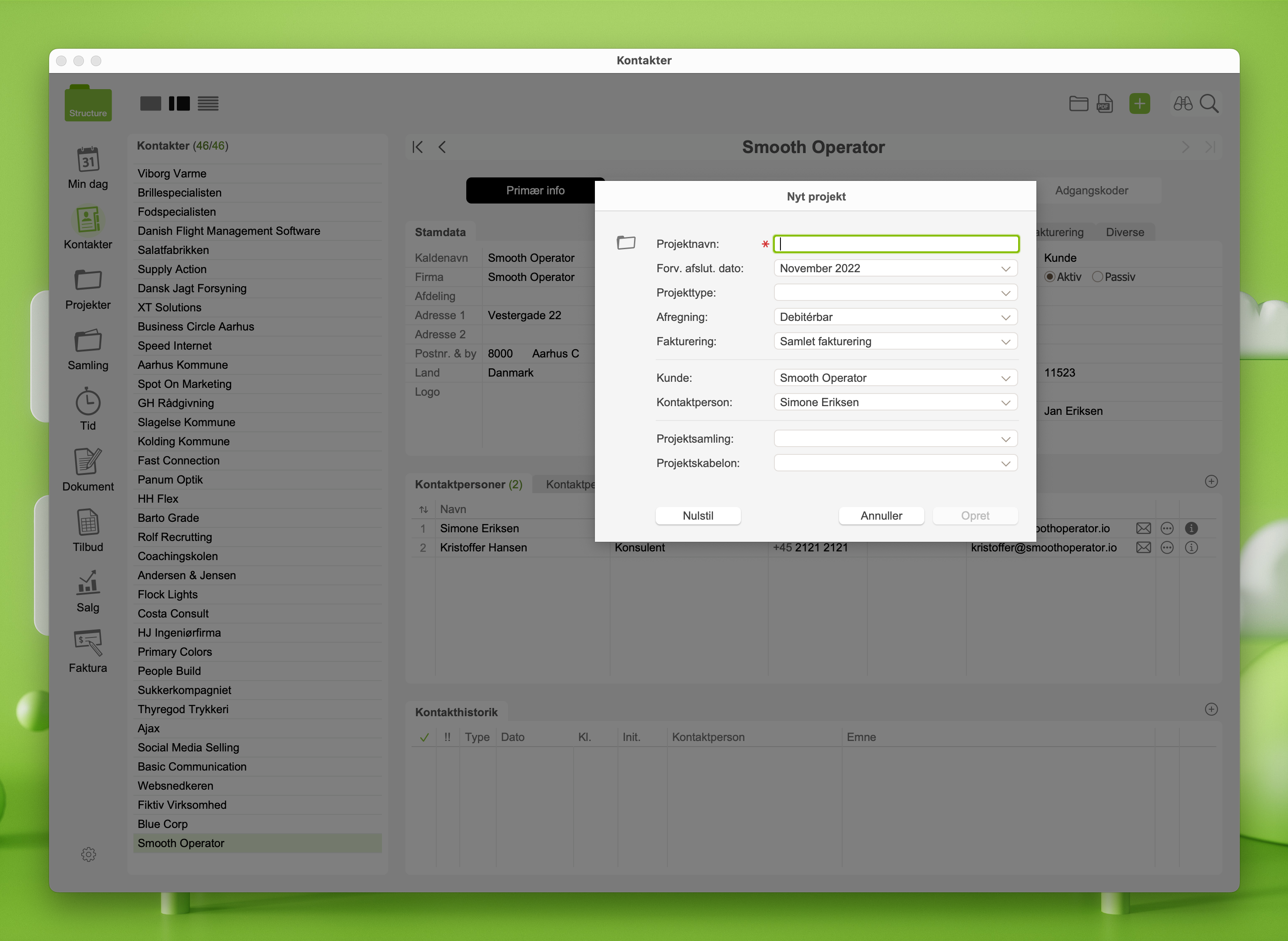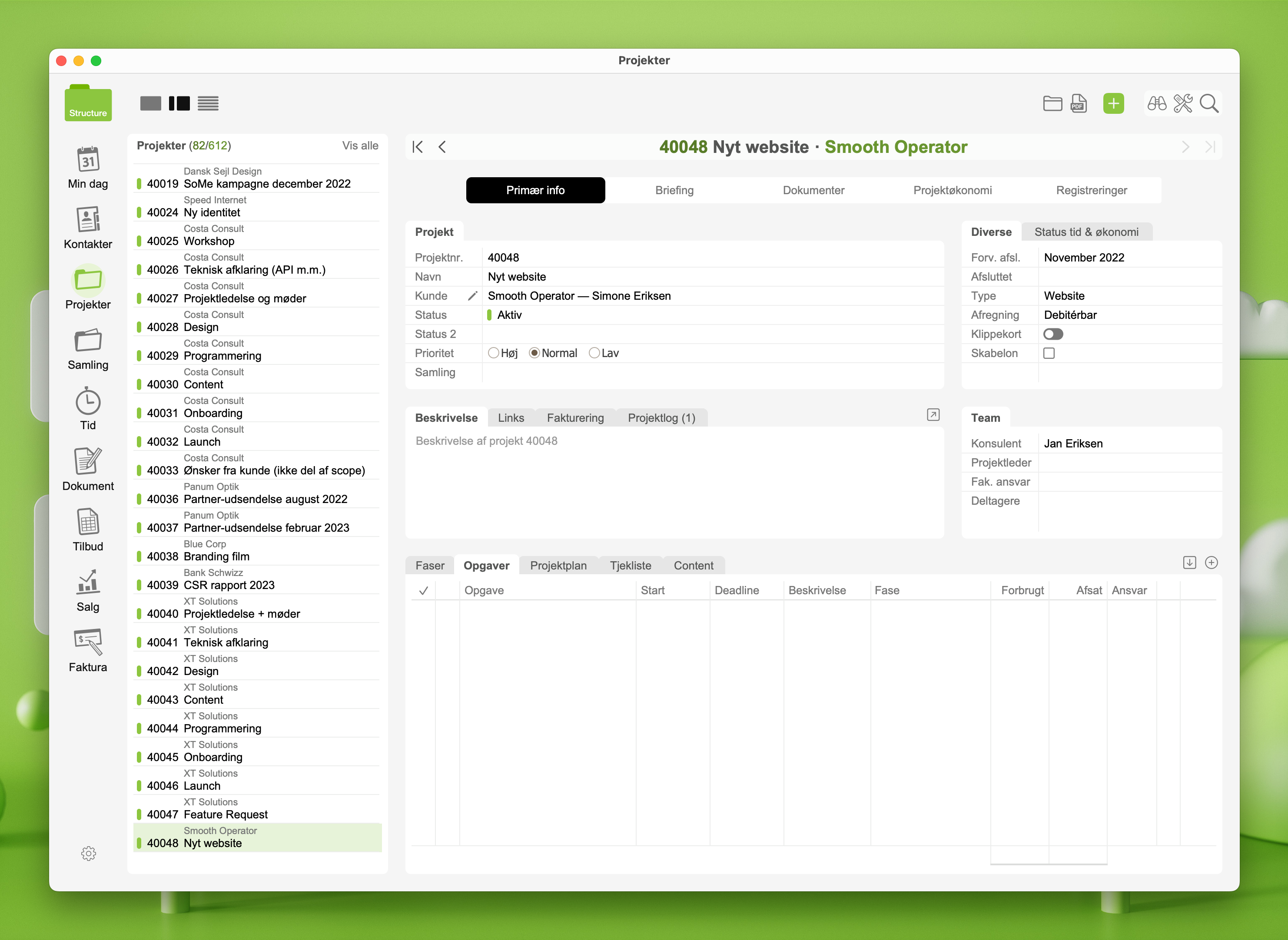 Når du skal oprette et projekt, så forudsætter det, at kunden er oprettet i forvejen (læs her hvordan du opretter en kunde).