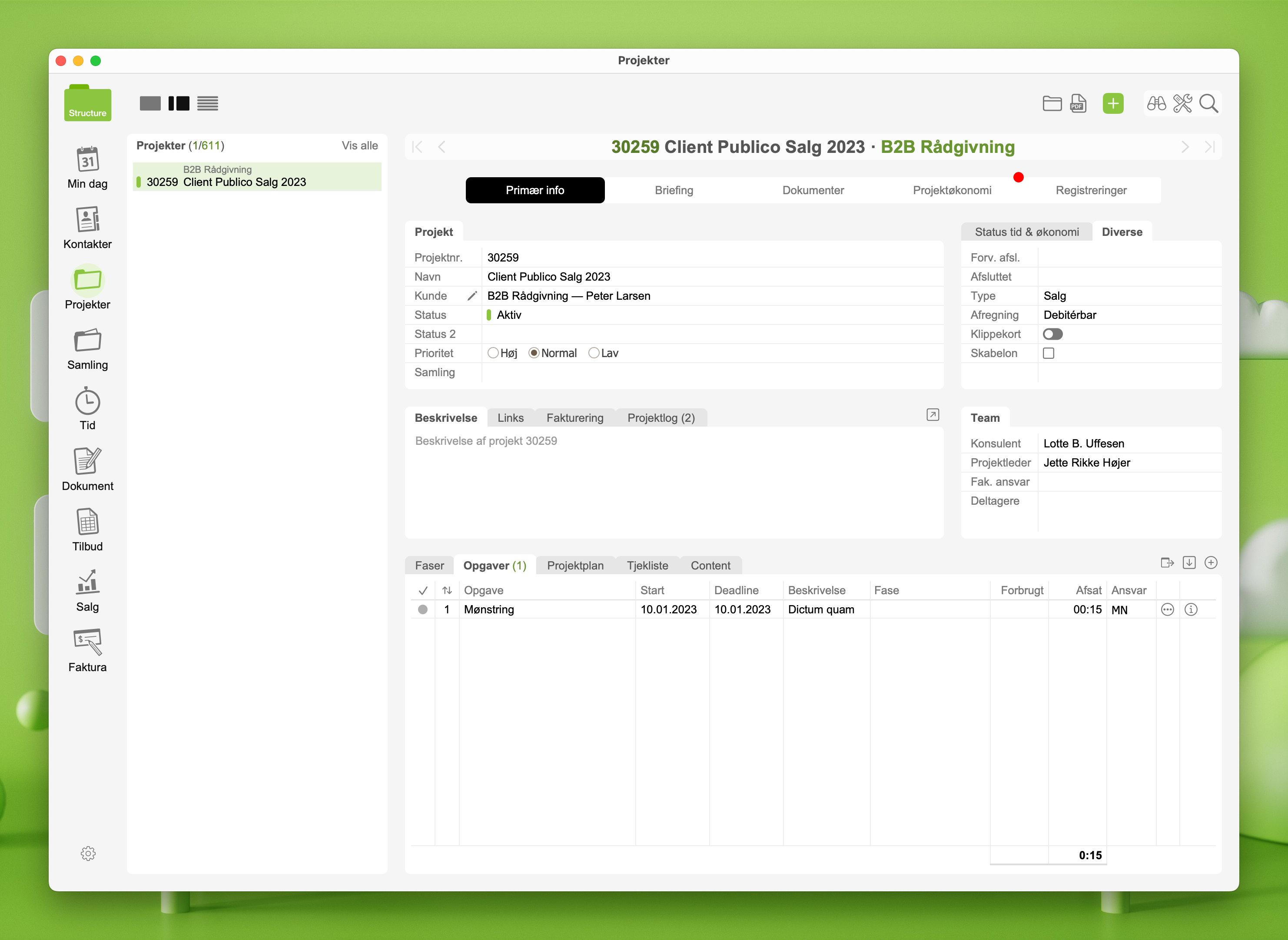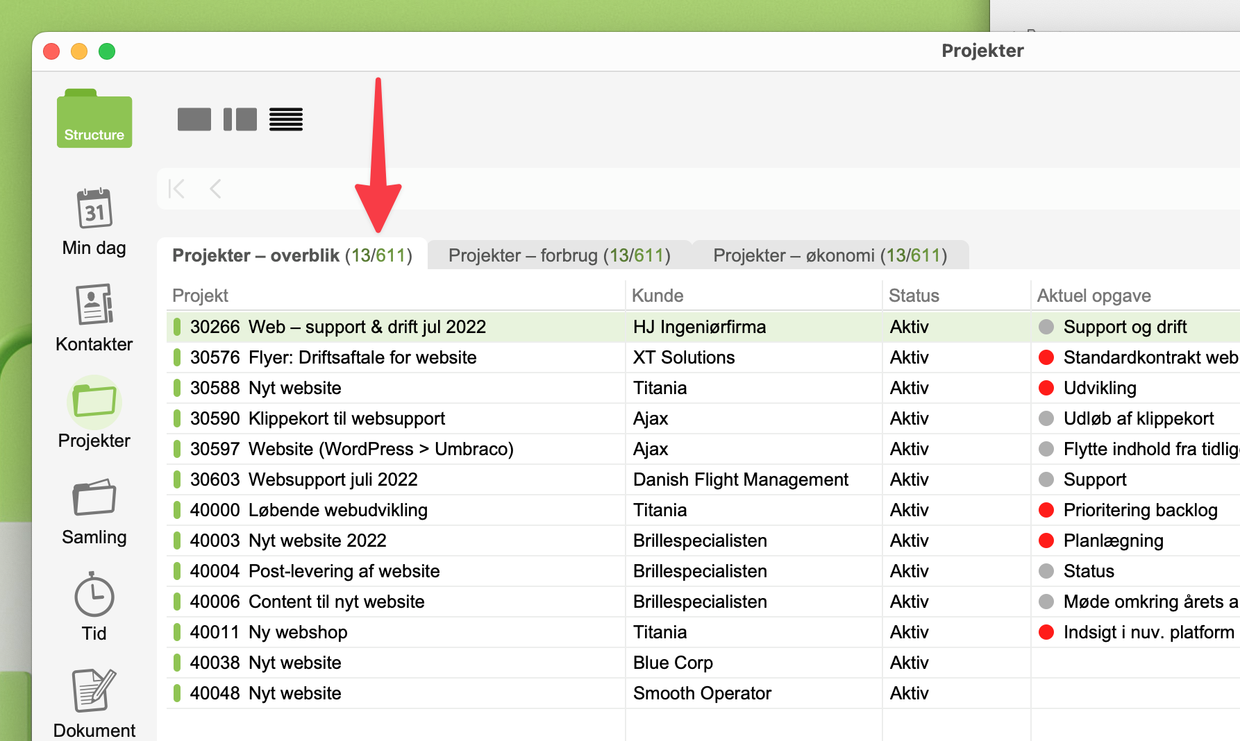 1. Gå til modulet Projekter