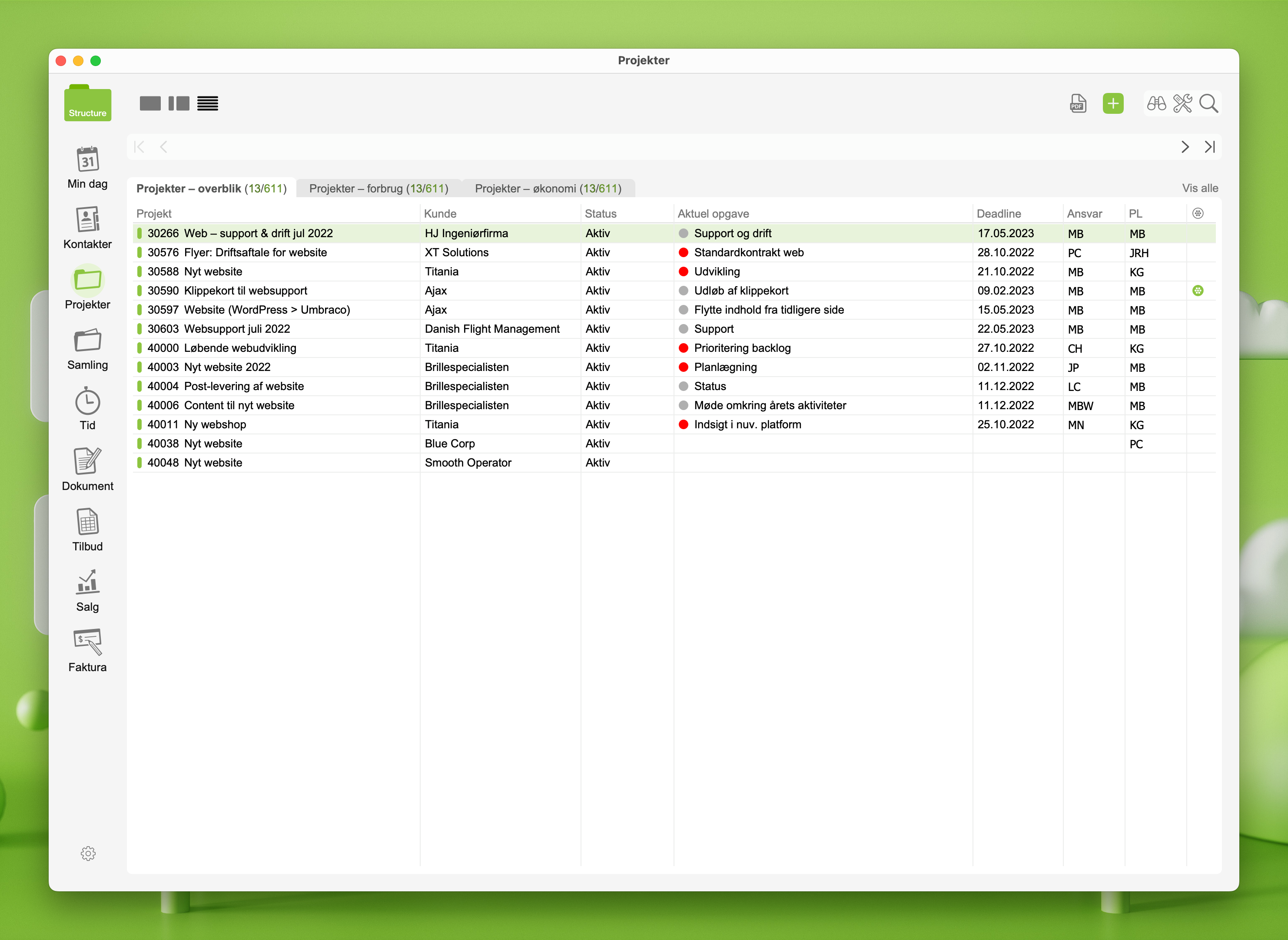 Der er mange kort i modulet Projekter. Og i takt med at du bruger Structure mere og mere, så bliver antallet bare større og større. Søgefunktionen hjælper dig til hurtigt at finde netop det ønskede projekt.