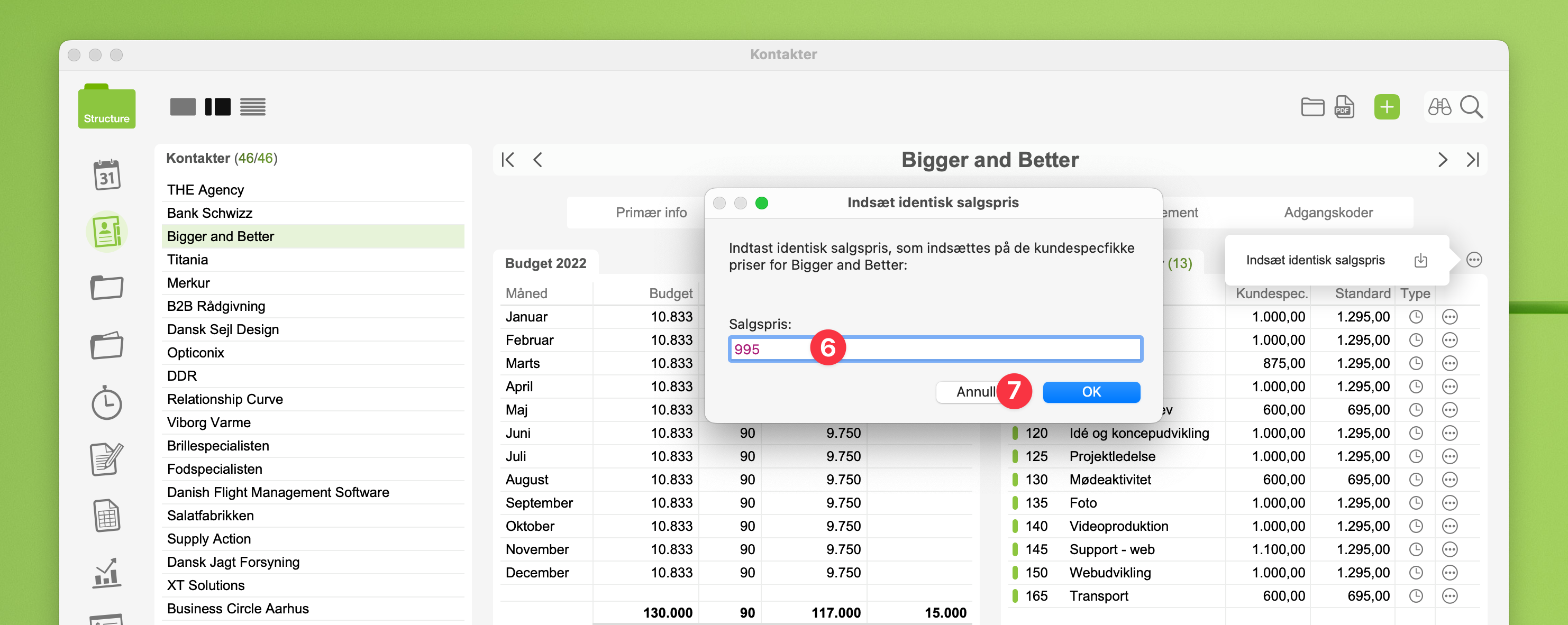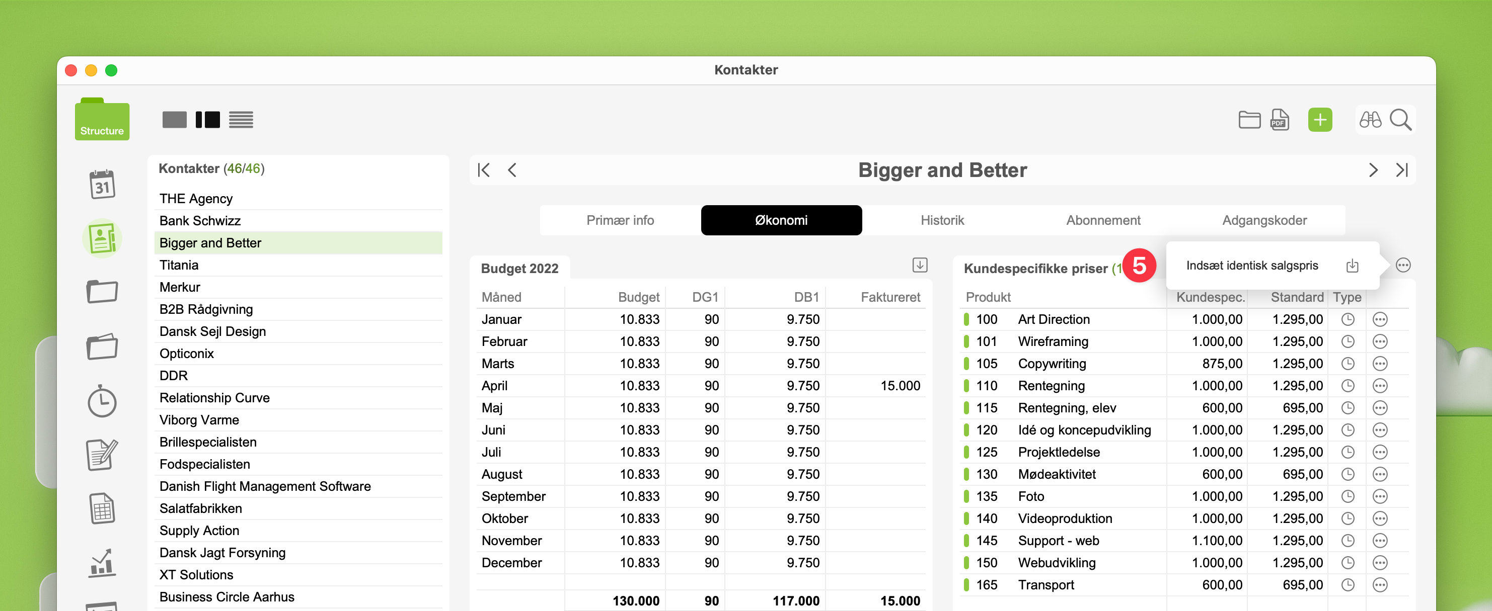 Her sker du kundespecifikke priser for virksomheden Bigger and Better
