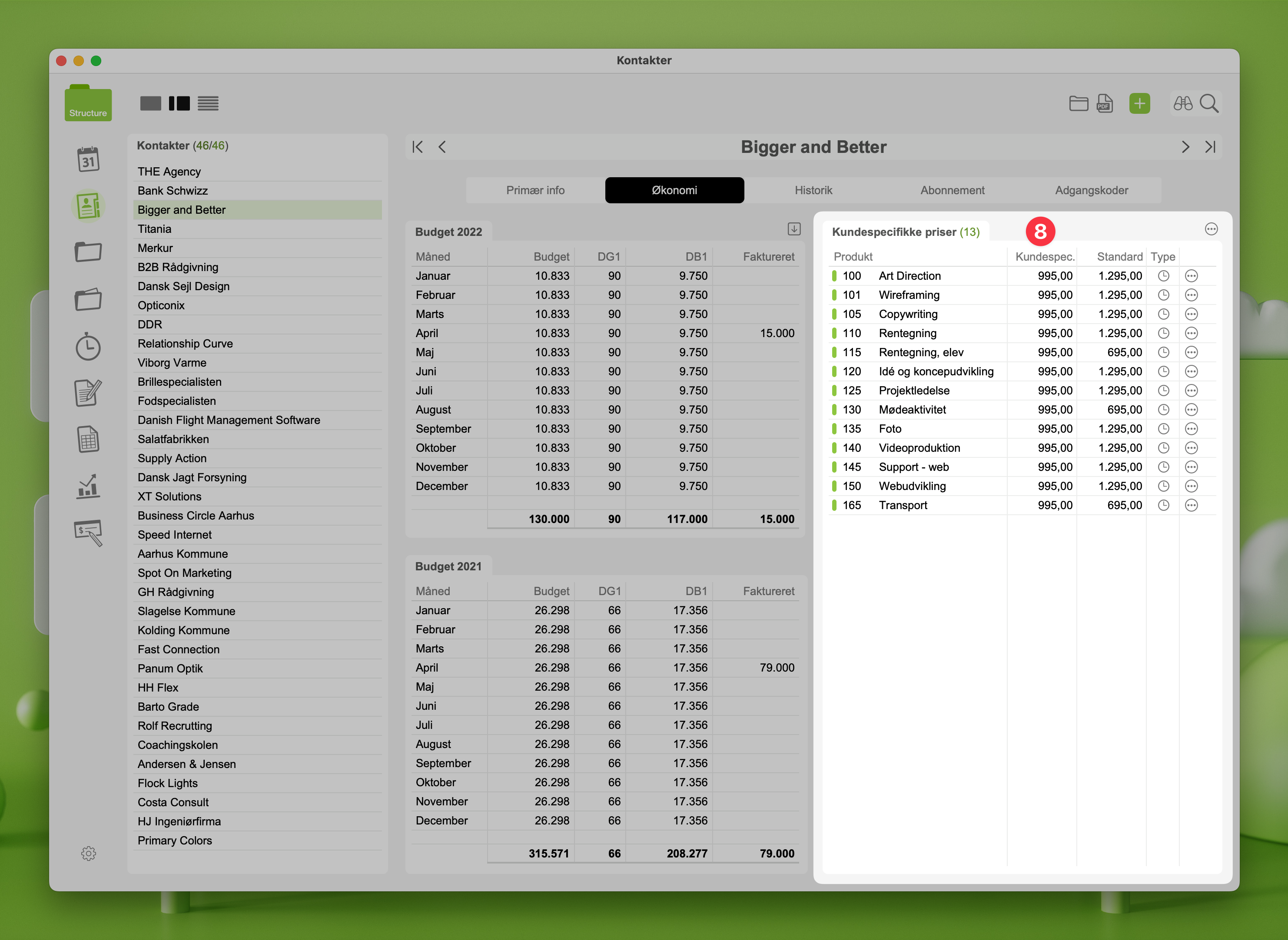 Her sker du kundespecifikke priser for virksomheden Bigger and Better