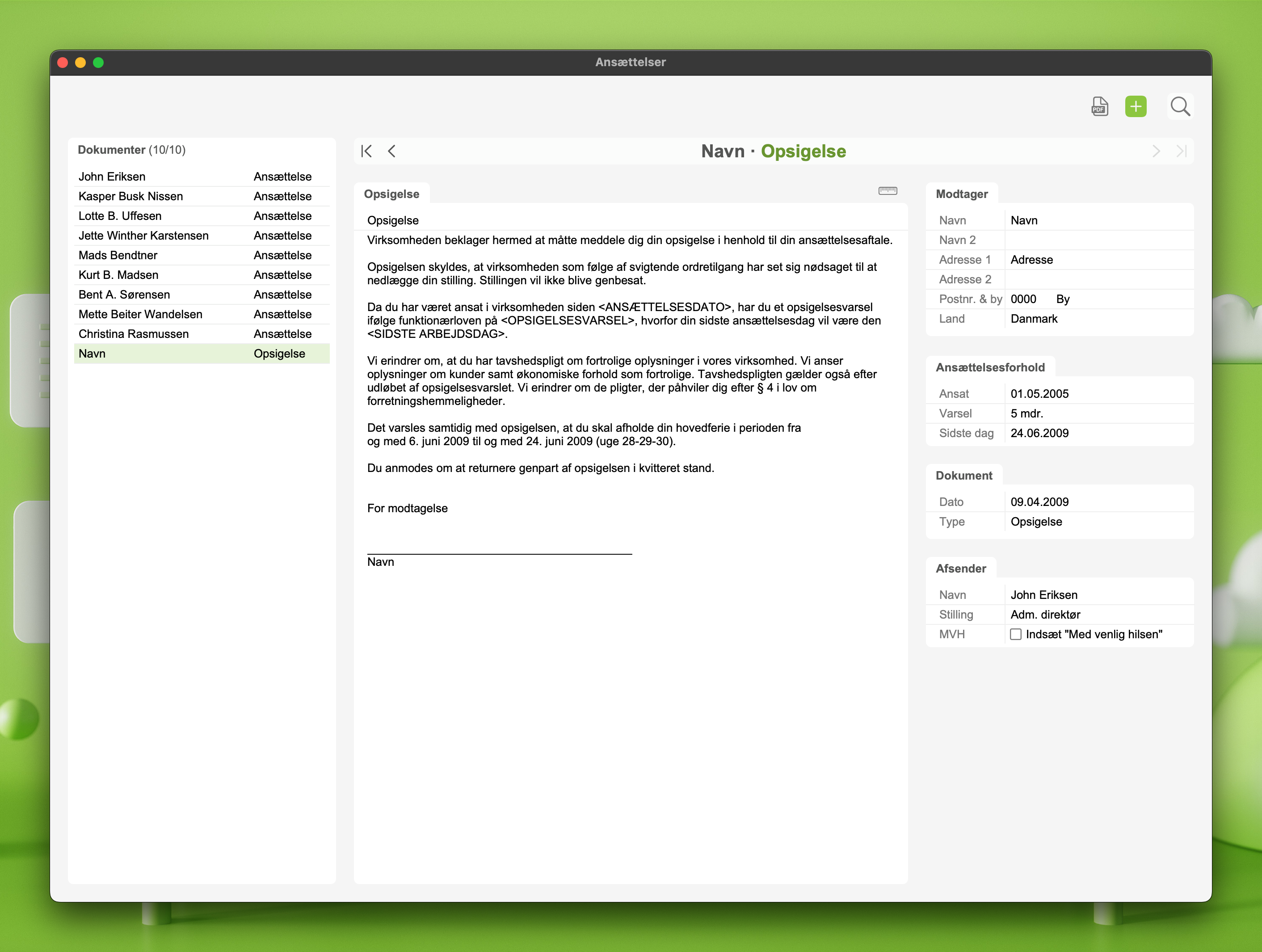 - Ansættelseskontrakter
