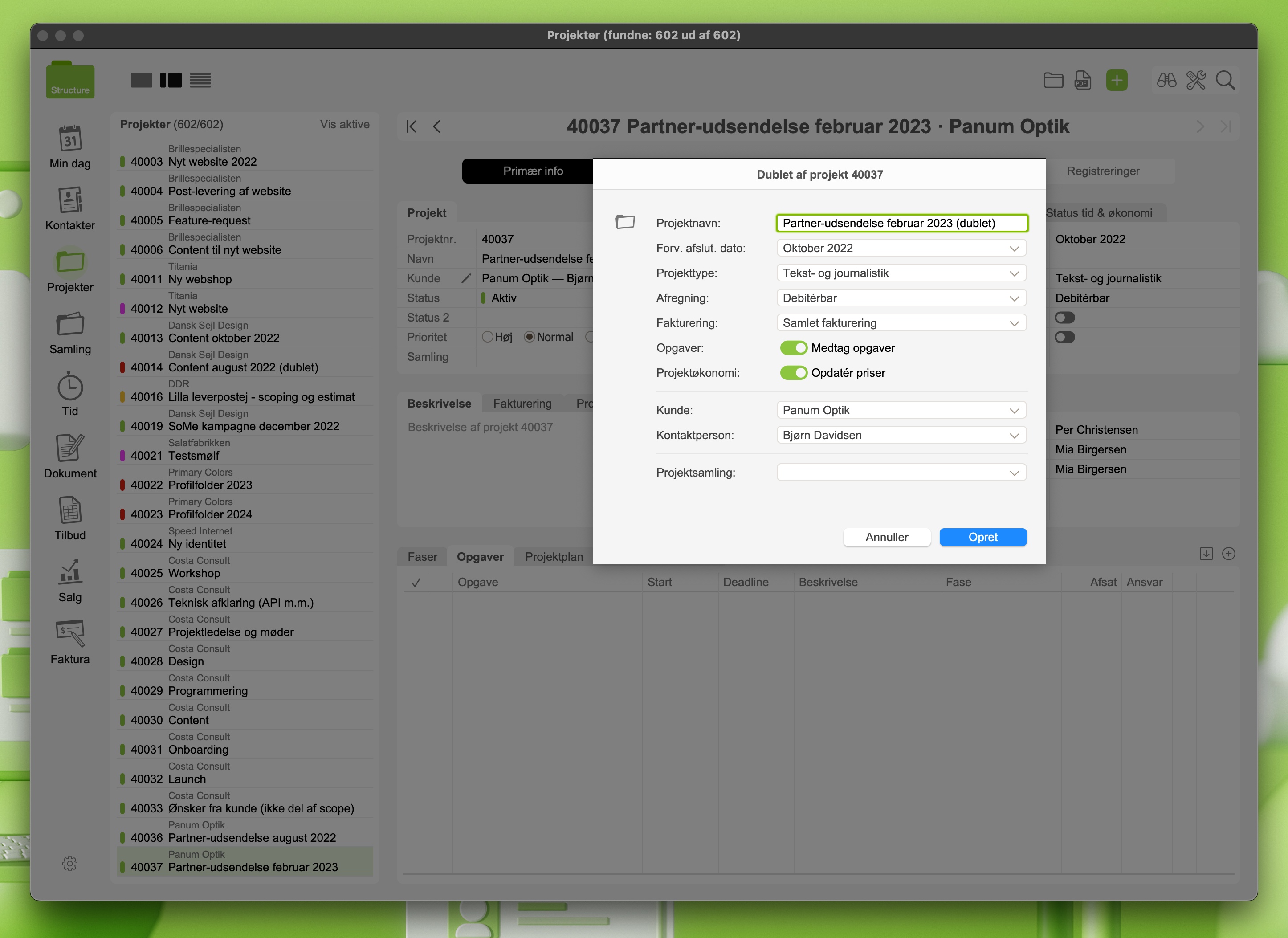 Du kan nemt "genbruge" et eksisterende projekt ved at lave en dublet.