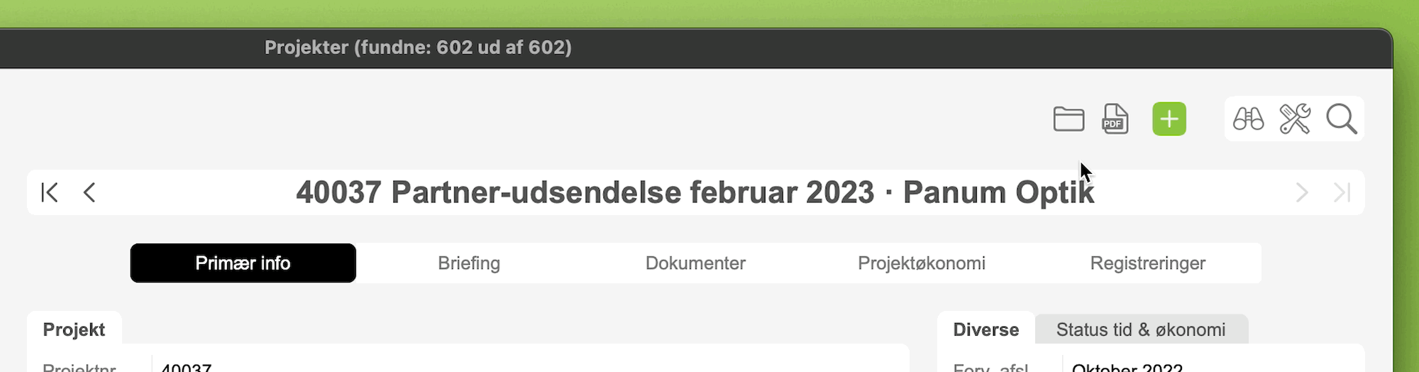 1. Gå til modulet Projekter