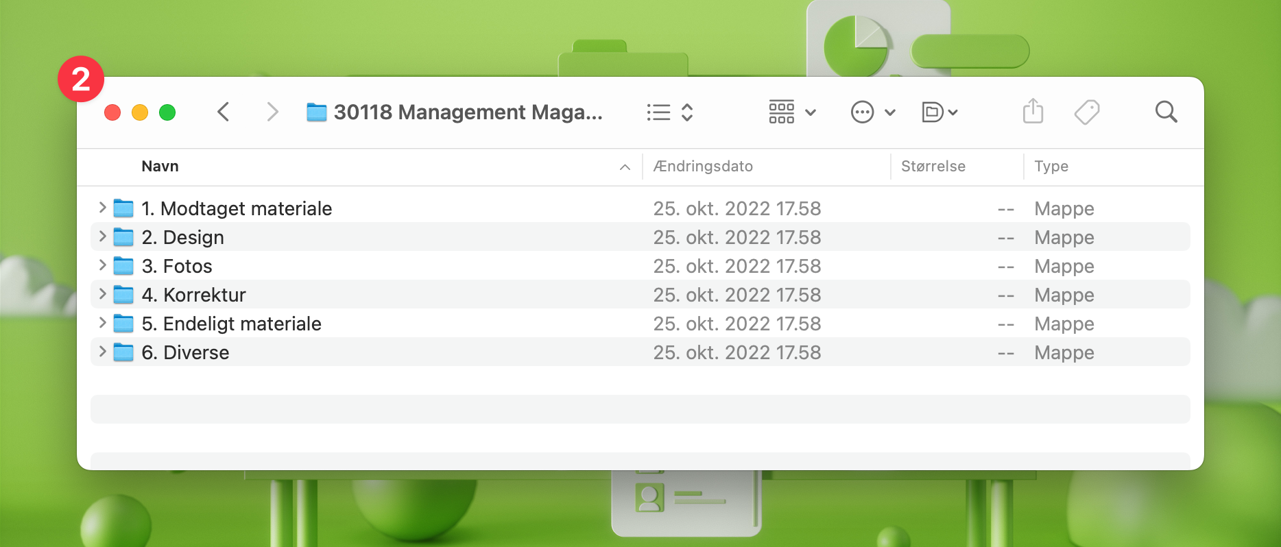 Du kan bestemme hvilke undermapper du vil have i en projektmappe. Læs mere her.