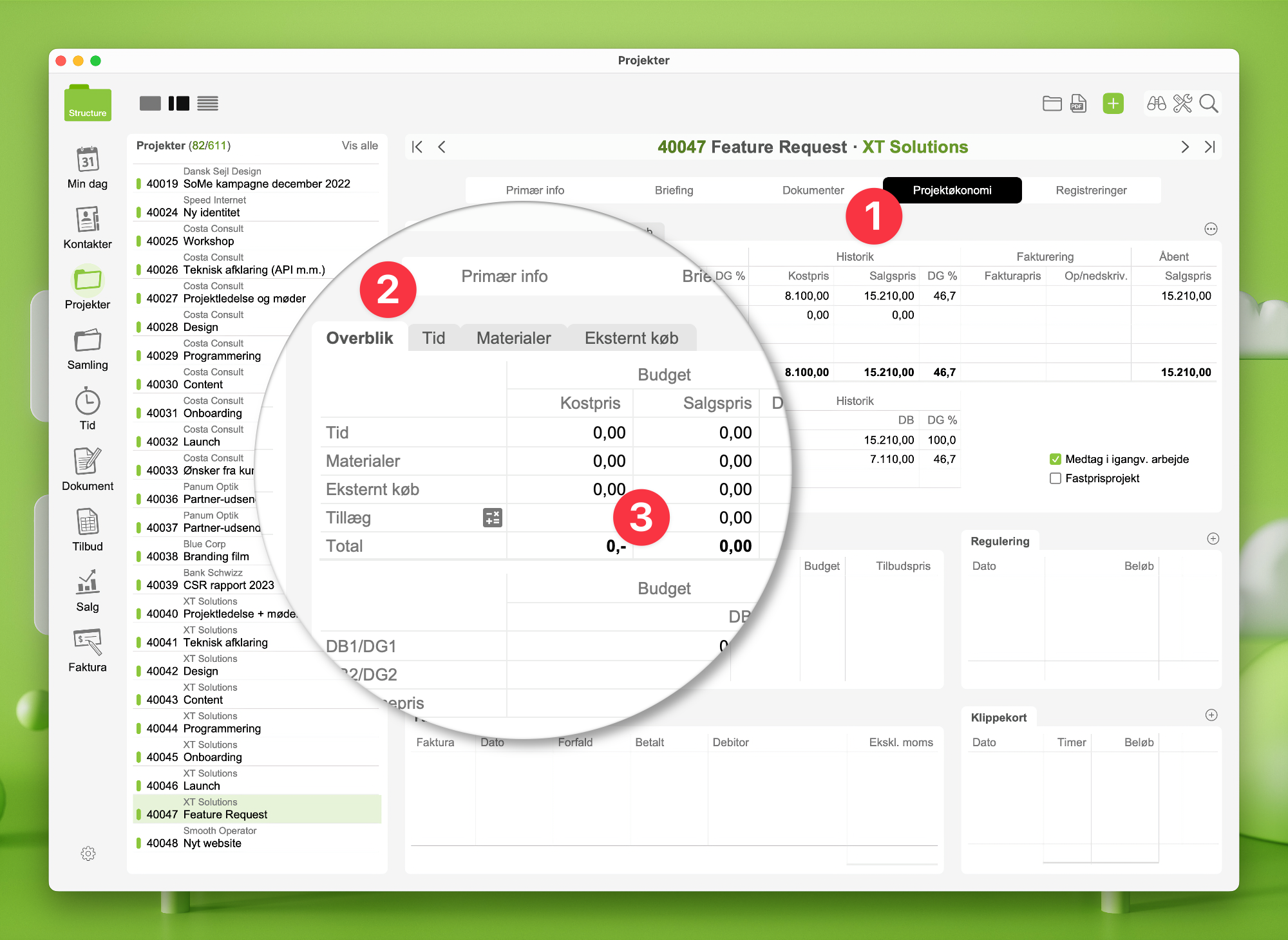 - Gå til sektionen Projektøkonomi