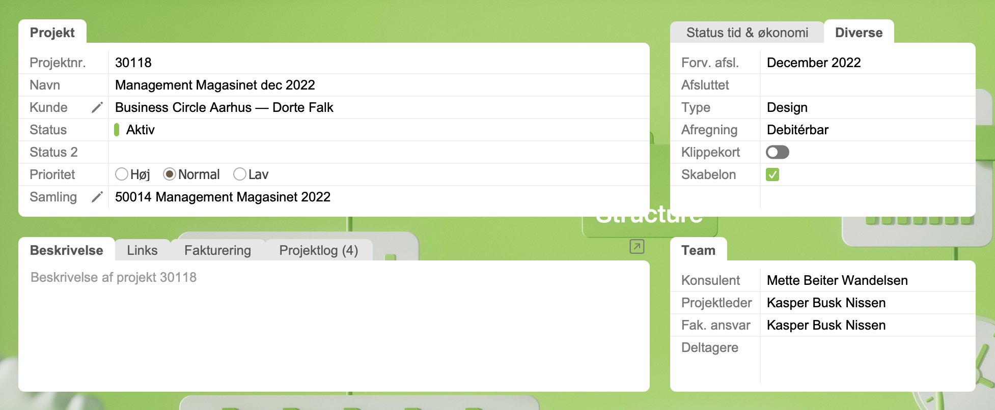 I Projekter kan du indtaste og se en lang række informationer for et projekt.