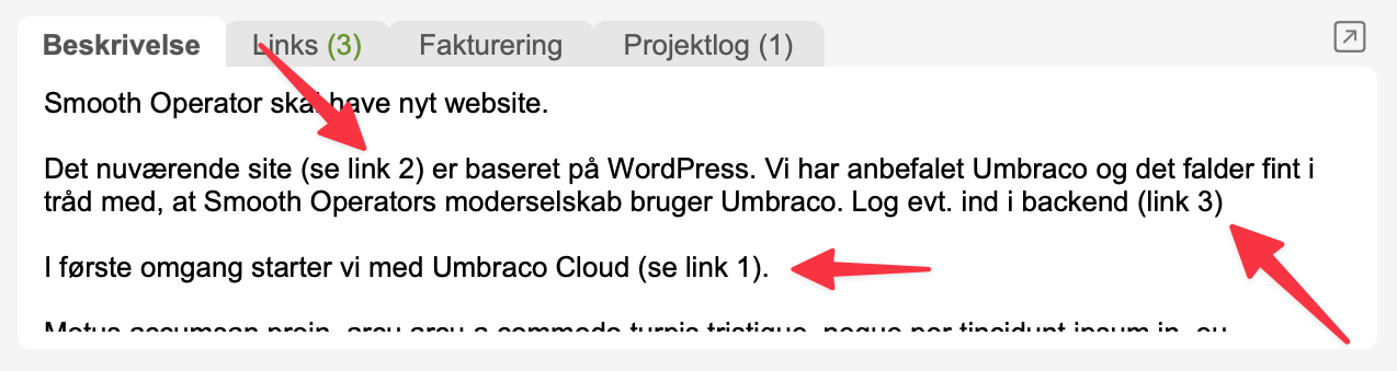 Som du kan se på screenshot 👆🏻, så nummereres links-linjerne automatisk. Linjenummeret kan f.eks. anvendes i beskrivelsen (se screenshot 👇🏻)