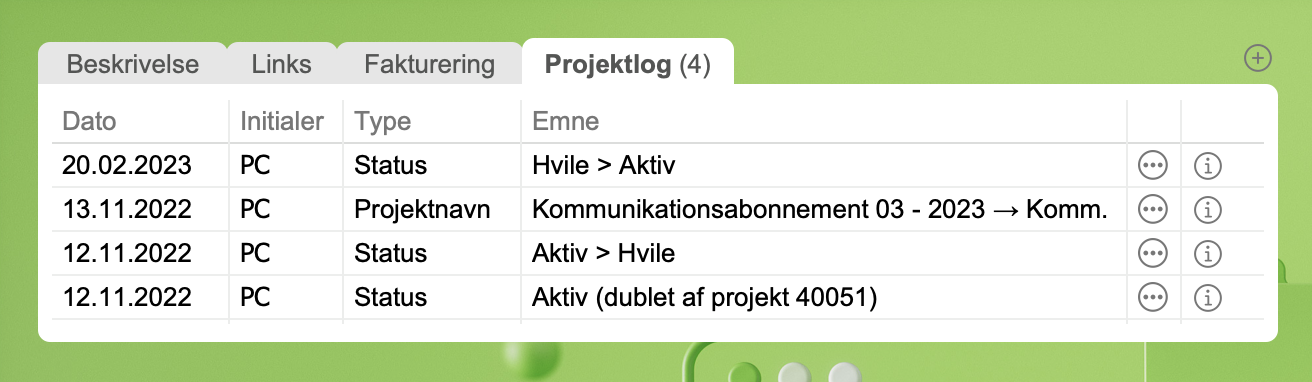 Projektlog minder lidt om logbogen på et skib. Her registreres automatisk: