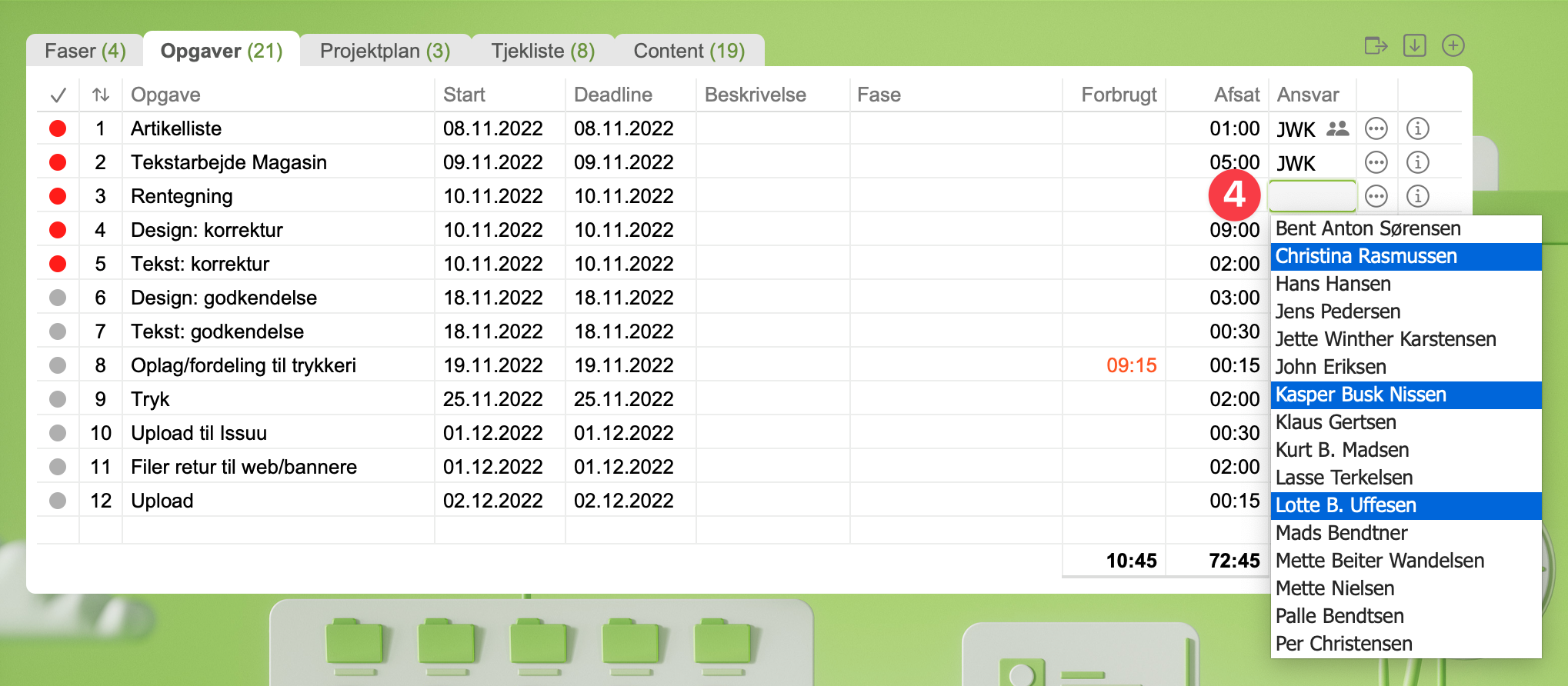 1. Der er nu valgt tre ansvarlige for opgaven og dette indikeres med ikonet