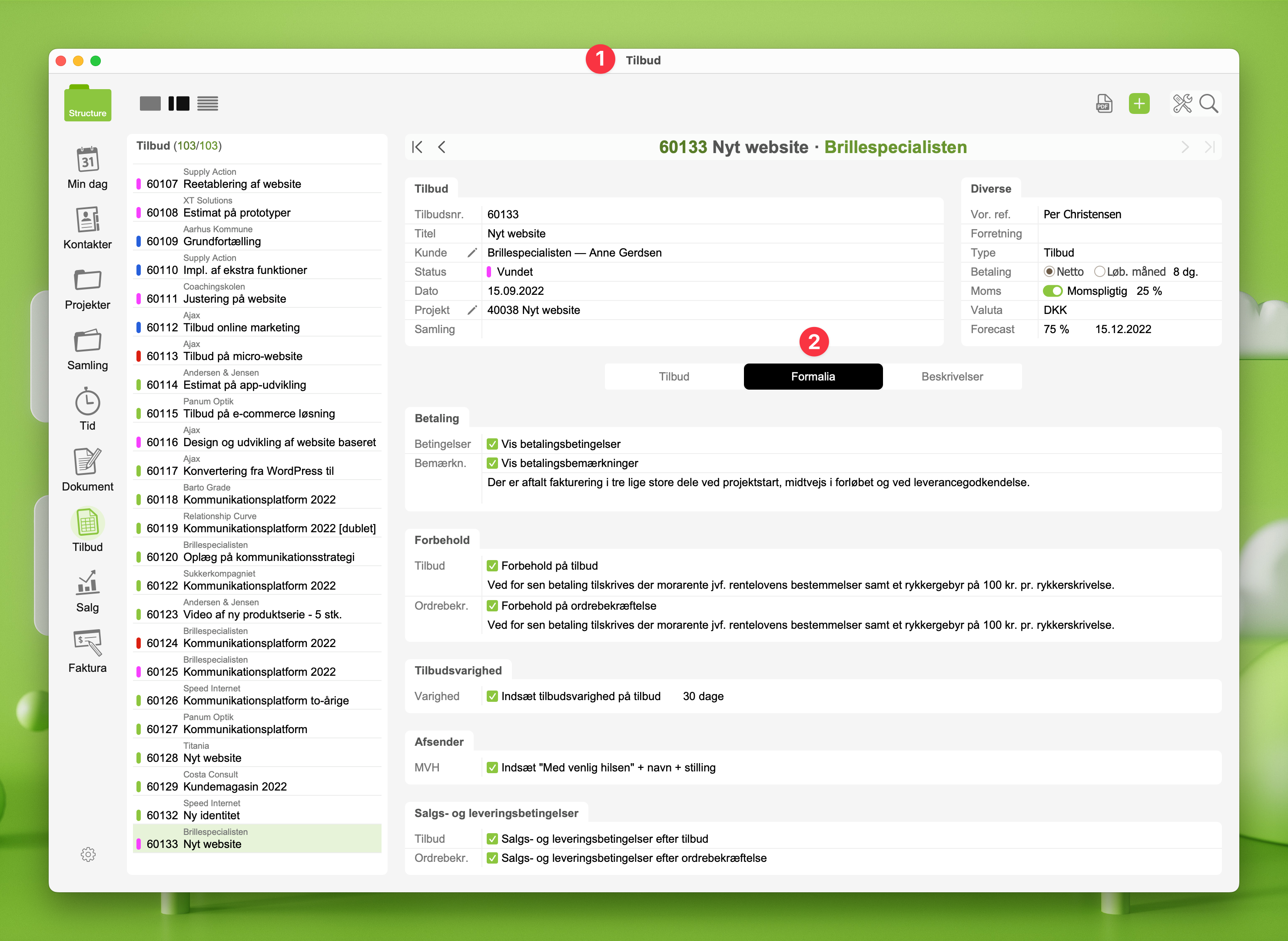 Formalia tjener grundlæggende to formål; at dit tilbud lever op til lovmæssige krav og at du forventningsafstemmer med din kunde om alt "det kedelige".