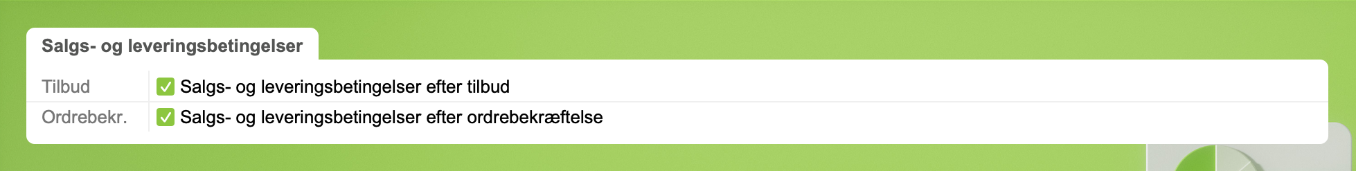 Sæt kryds hvis du vil have side med salgs- og leveringsbetingelser i PDF'en (indsættes som sidste side).