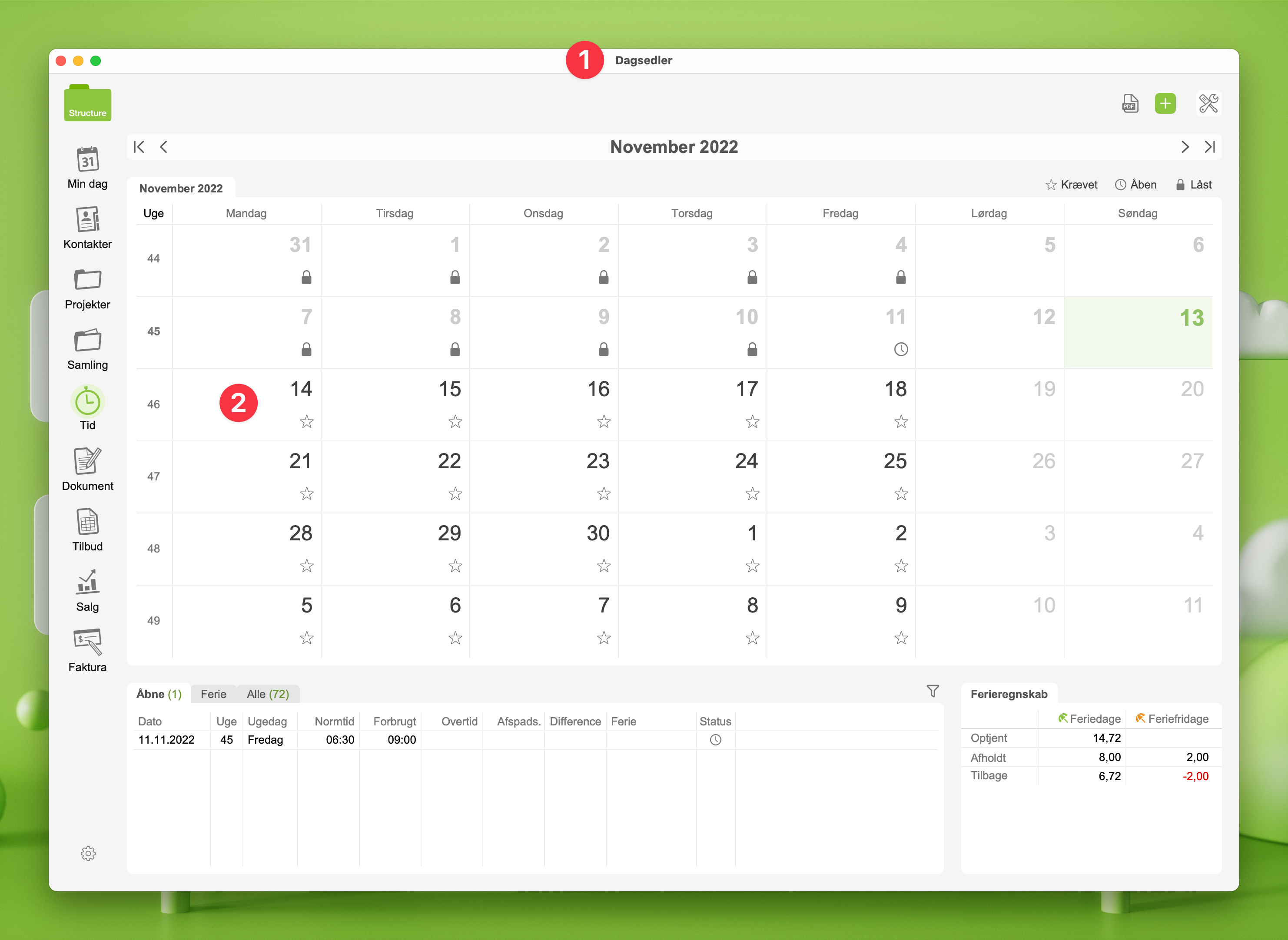 - Lokalisér den ønskede dag og klik på den (i dette eksempel den 14.11.2022)