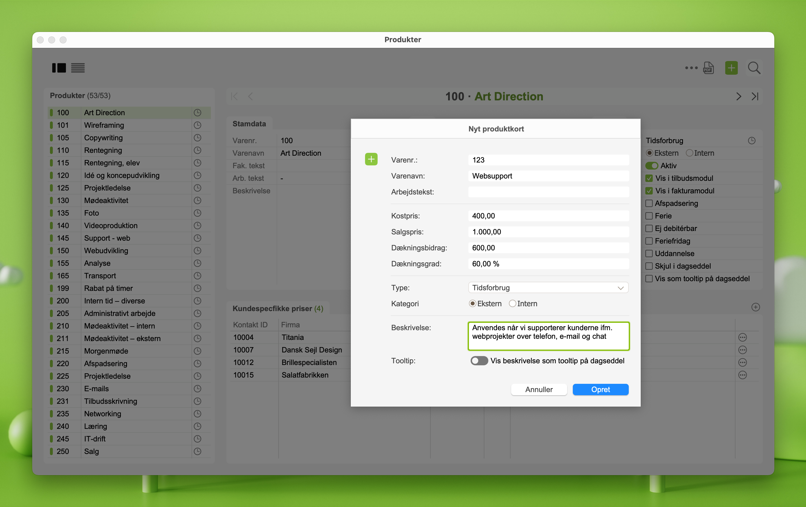 Opret produkt